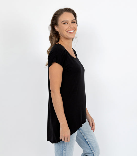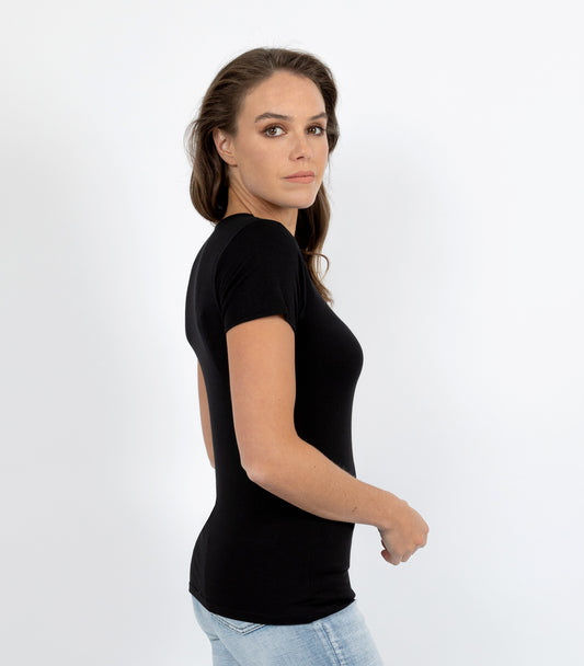 Bamboo Elastane Short Sleeve T-Shirt - Black