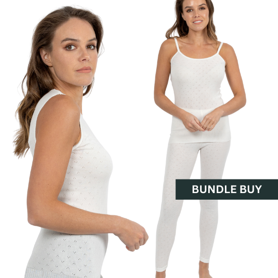 Experience total comfort and warmth without the weight with our Special Bundle Buy Traditional RTR SeamFree Cami & Legging in Ivory.