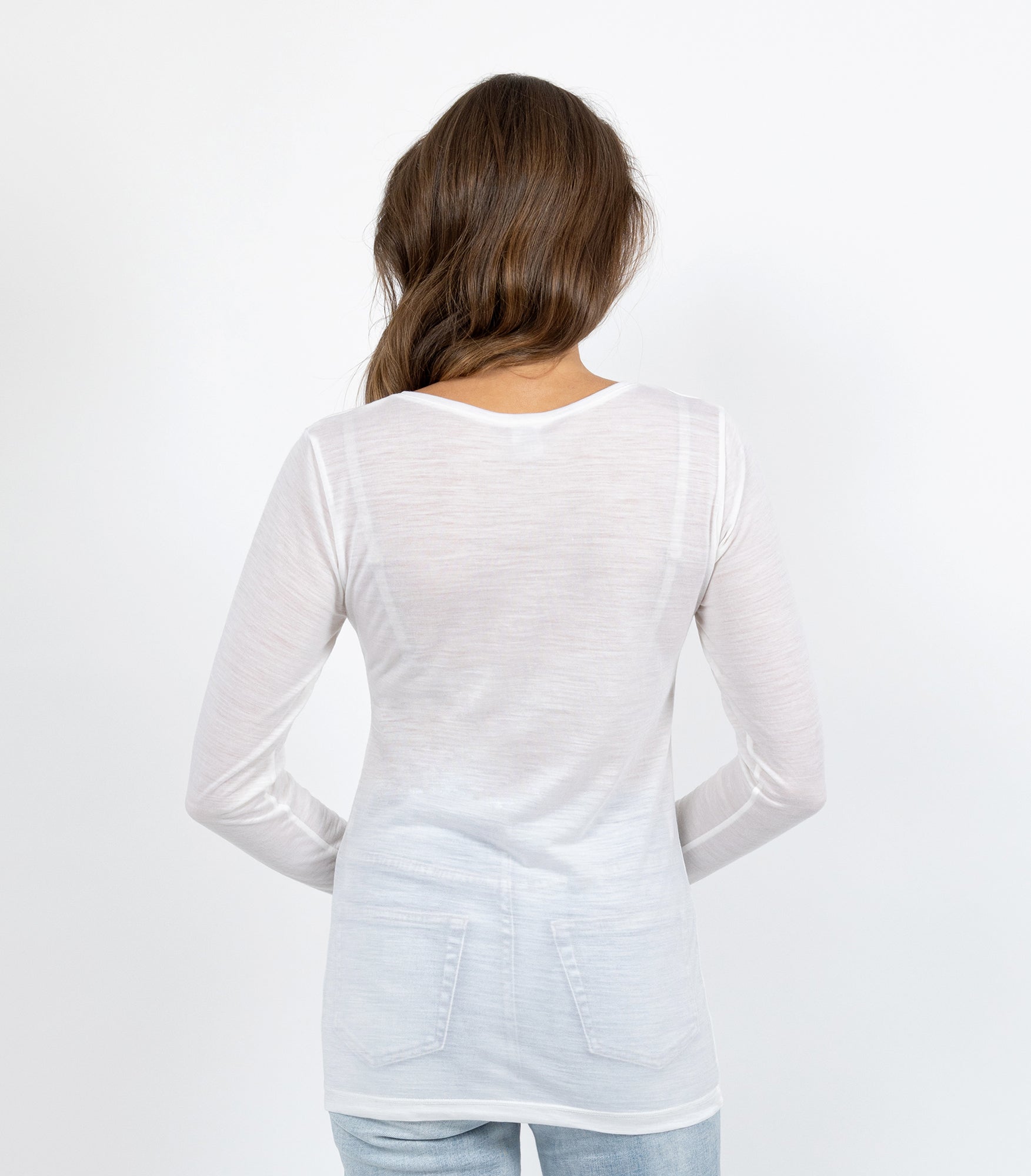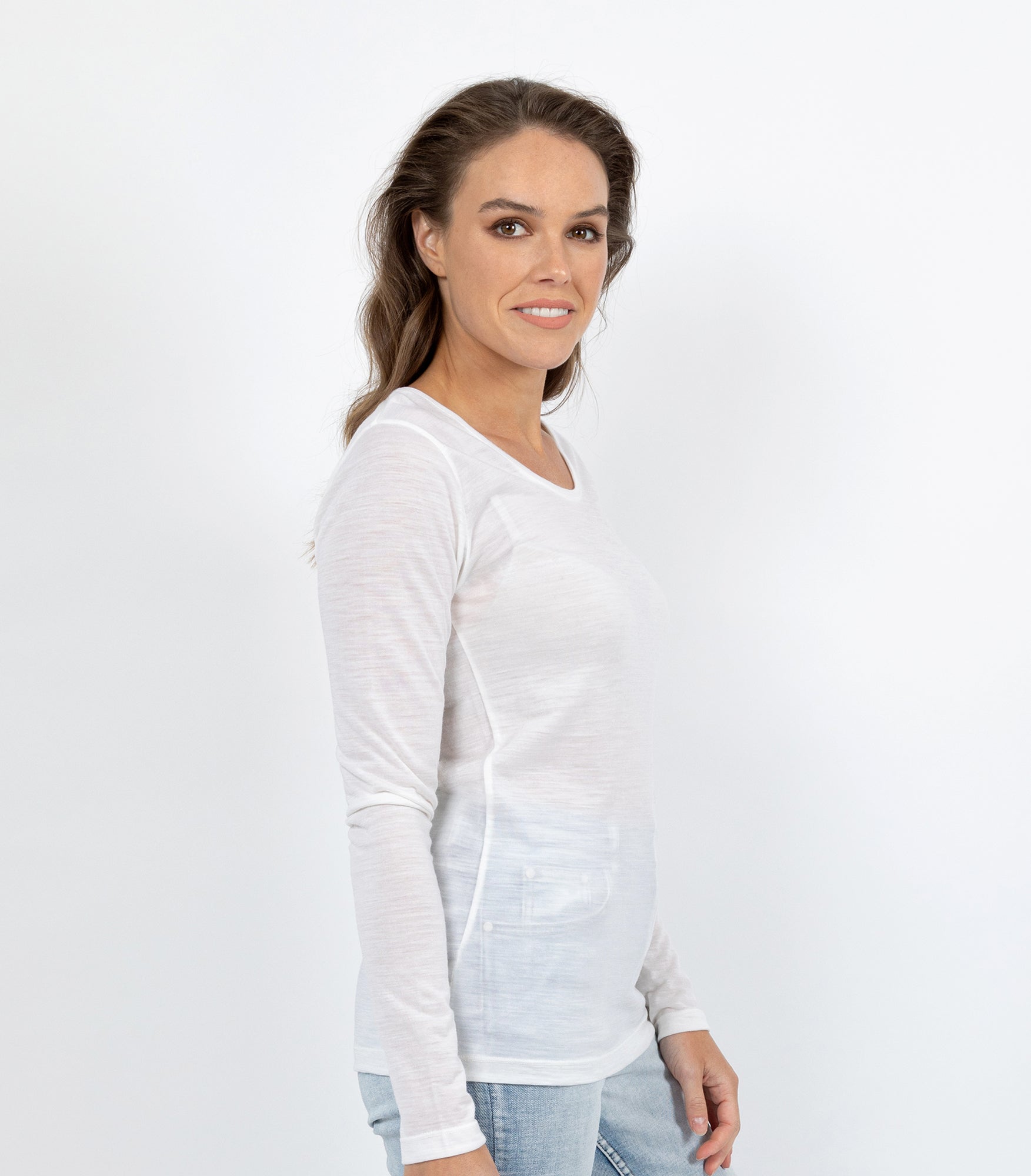 Our E Wool long sleeve is a beautifully light and soft garment that will keep you cosy and warm without the weight. It is a blend of fine micron Merino Wool and Lyocell. Lyocell is derived from Eucalyptus trees and is a super soft fibre. The perfect combination.